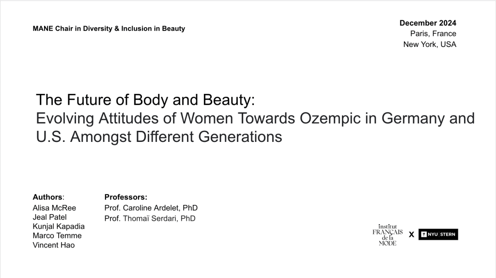 Partnered with MANE’s Chair in Diversity & Inclusion in Beauty to conduct a cross-market research study exploring how emerging weight-loss medications are reshaping perceptions of beauty, body image, and status across generations in the U.S. and Germany. The project aimed to understand the intersection of medical innovation, cultural values, and evolving consumer expectations within the global beauty landscape .